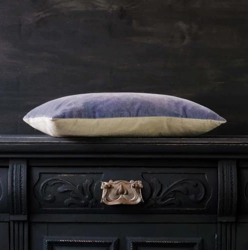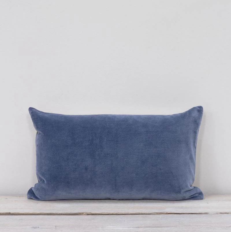 Fjord blue rectangle velvet cushion. These beautifulĀ cotton blue velvet cushions with a natural coloured textured reverse come complete with feather inner. Reminiscent of theĀ most beautifulĀ shade of blue, inspired by Nordic Fjords,Ā this Fjord blueĀ velvetĀ is a soft, greyed off shade that layers with so many colours in.