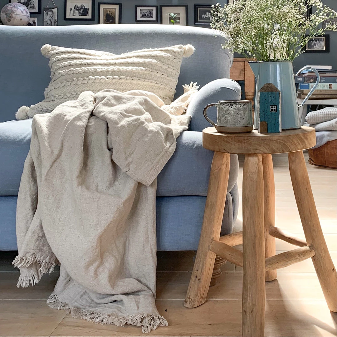 100% Cotton Throw in natural. This natural coloured throw with natural fringing to the shorter sides has the texture and look of linen but the softness of cotton, making it a beautiful accessory for any home, but particularly suited to modern rustic, country or boho styles.