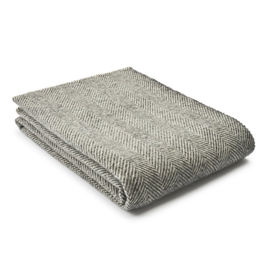 Slate Grey Pure New Wool Herringbone Throw with Blanket Stitch edging.