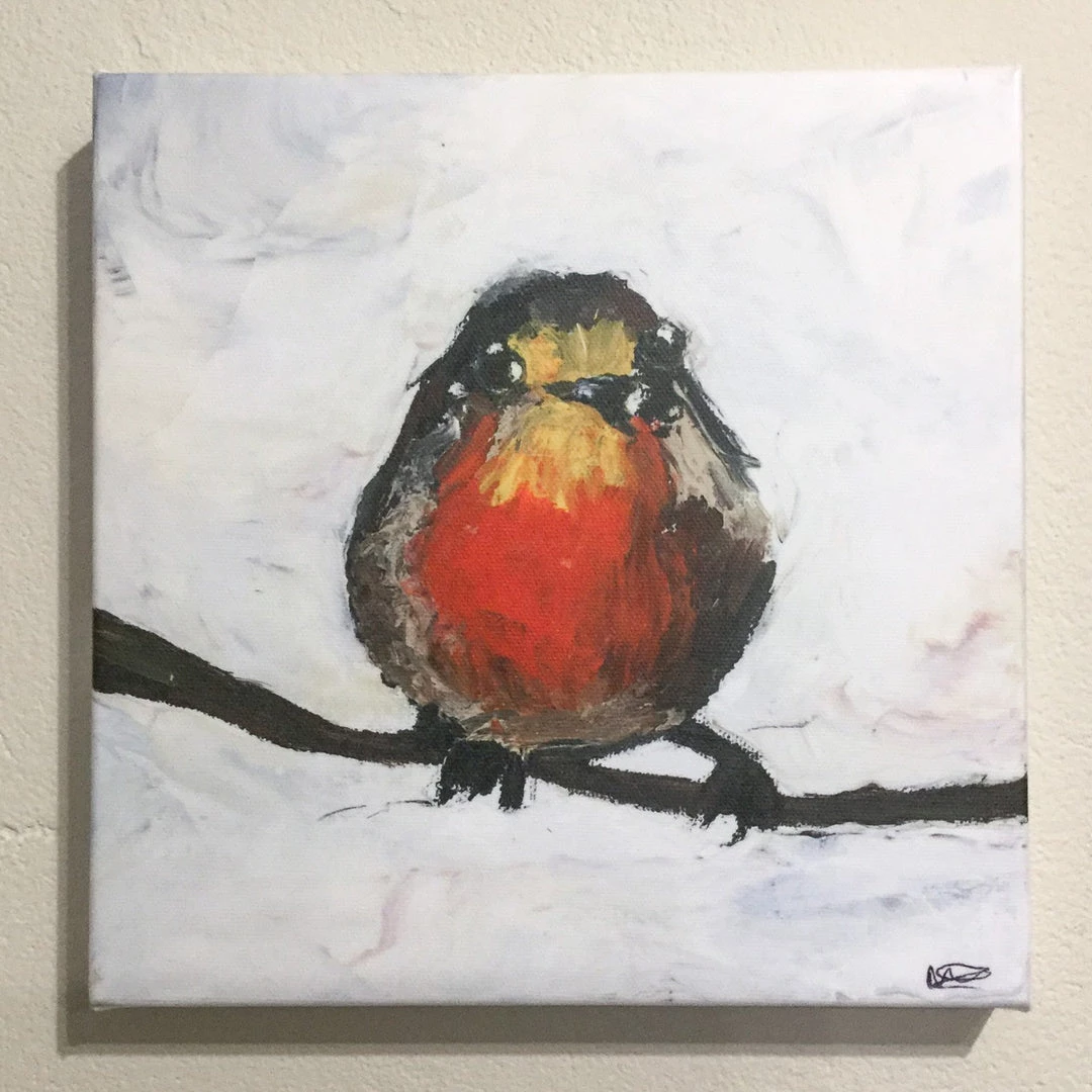 Robin print on canvas. Print of an original oil painting of a robin on canvas.