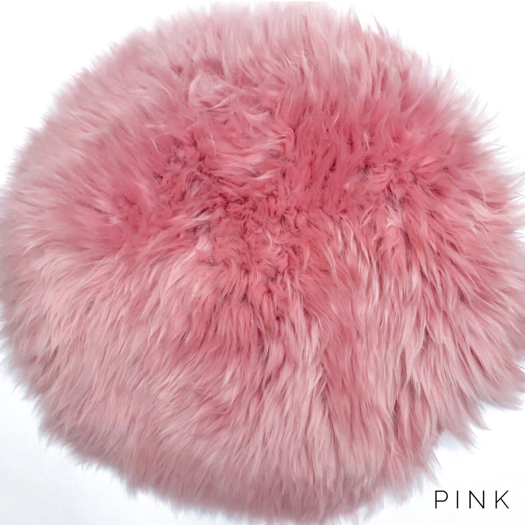 Circular sheepskin Seat pad. Ideal for adding texture and comfort to a chair or stool. Available in a variety of dyed colours.