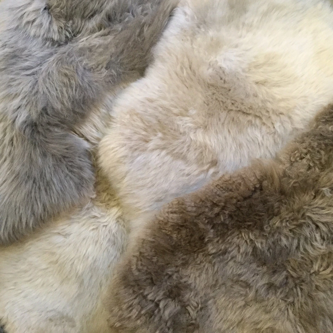 Each sheepskin is unique and the images shown are for example only. We cannot guarantee a particular mix of colours or exact sizes but can promise that each one is beautiful.