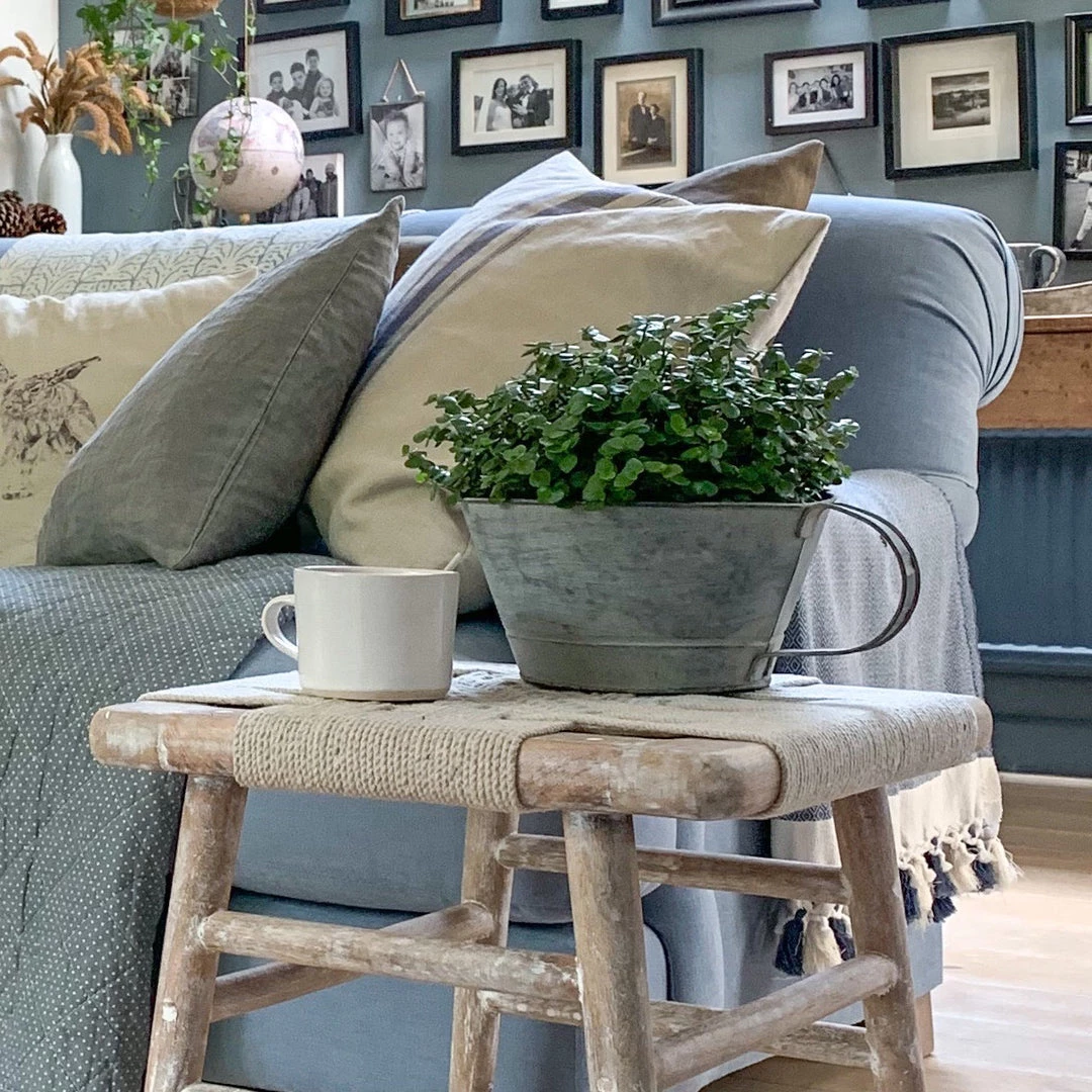 French Flower Pot with Handle. Crafted from zinc with a dusty, washed finish, this vintage style pot is the perfect rustic container for your plants or can be used for general storage.