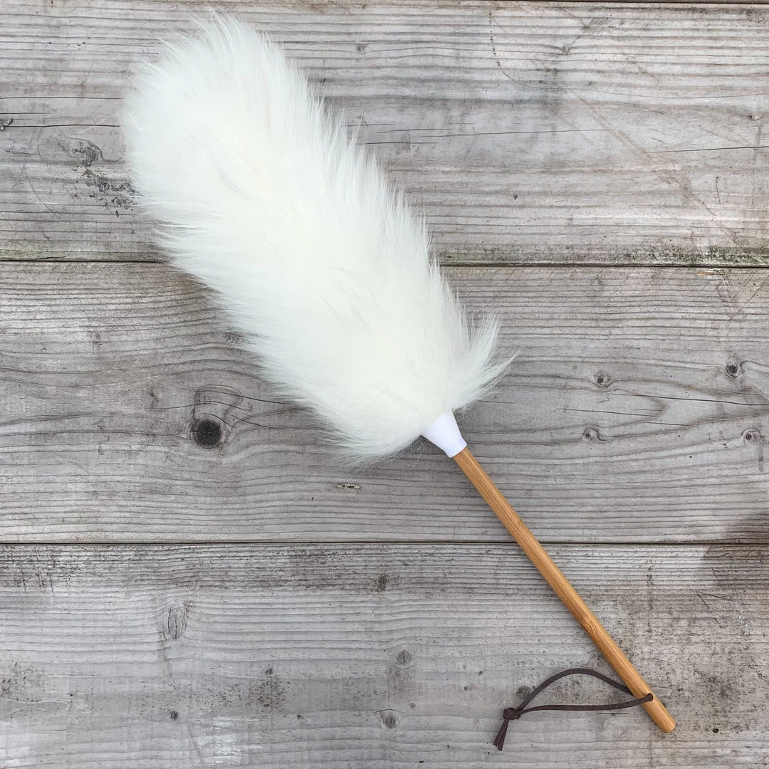 Sheepskin duster with bamboo handle. This natural fibre duster is both resilient and versatile enough to reach into most crevices. Use to dust blinds, woodwork, plant leaves, picture frames, fragile ornaments and much more. Comes with a hanging loop for easy storage when not in use. Washable.