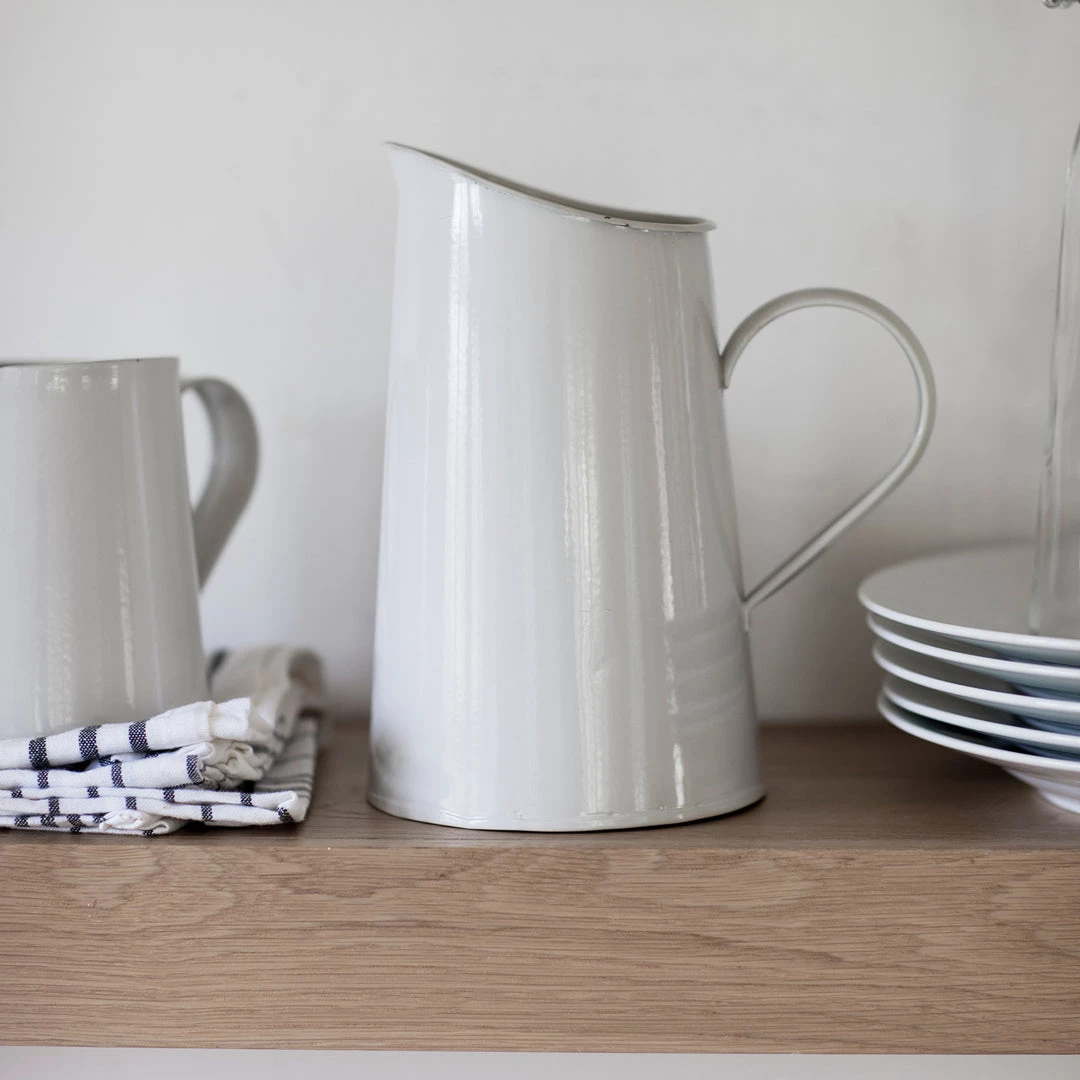 Classic Metal Jug. Perfect for use throughout the home, the Classic Jug is designed to suit any interior decor styles, traditional or contemporary. The retro style in our Chalk colourway is perfect for serving fresh water and juices at the dinner table.