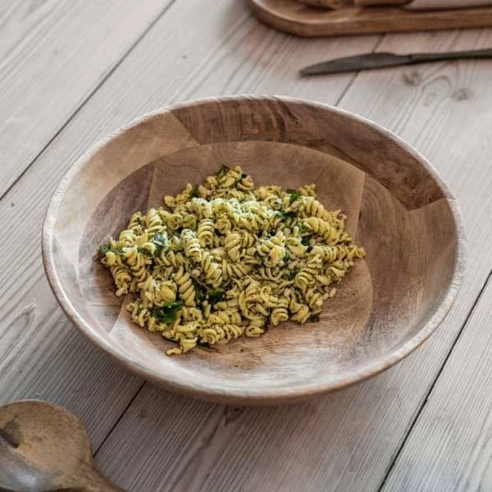 Large Mango wood serving bowl. Mounds of fresh lettuce, couscous and greens can be served to the table for all to share in these beautiful wooden serving bowls. Soft to touch with organic grain patterns they’re made from mango wood and come in two sizes.