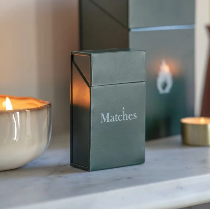 Match Box in Forest Green. These lovely metal boxes for storing cardboard match boxes are a must-have fireside accessory and are perfect for candle lovers. Matches not included.