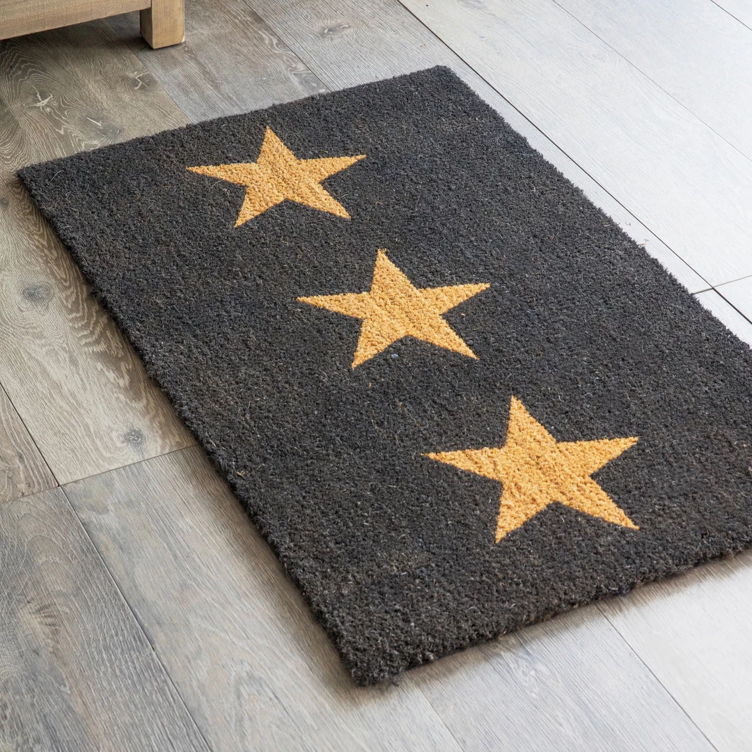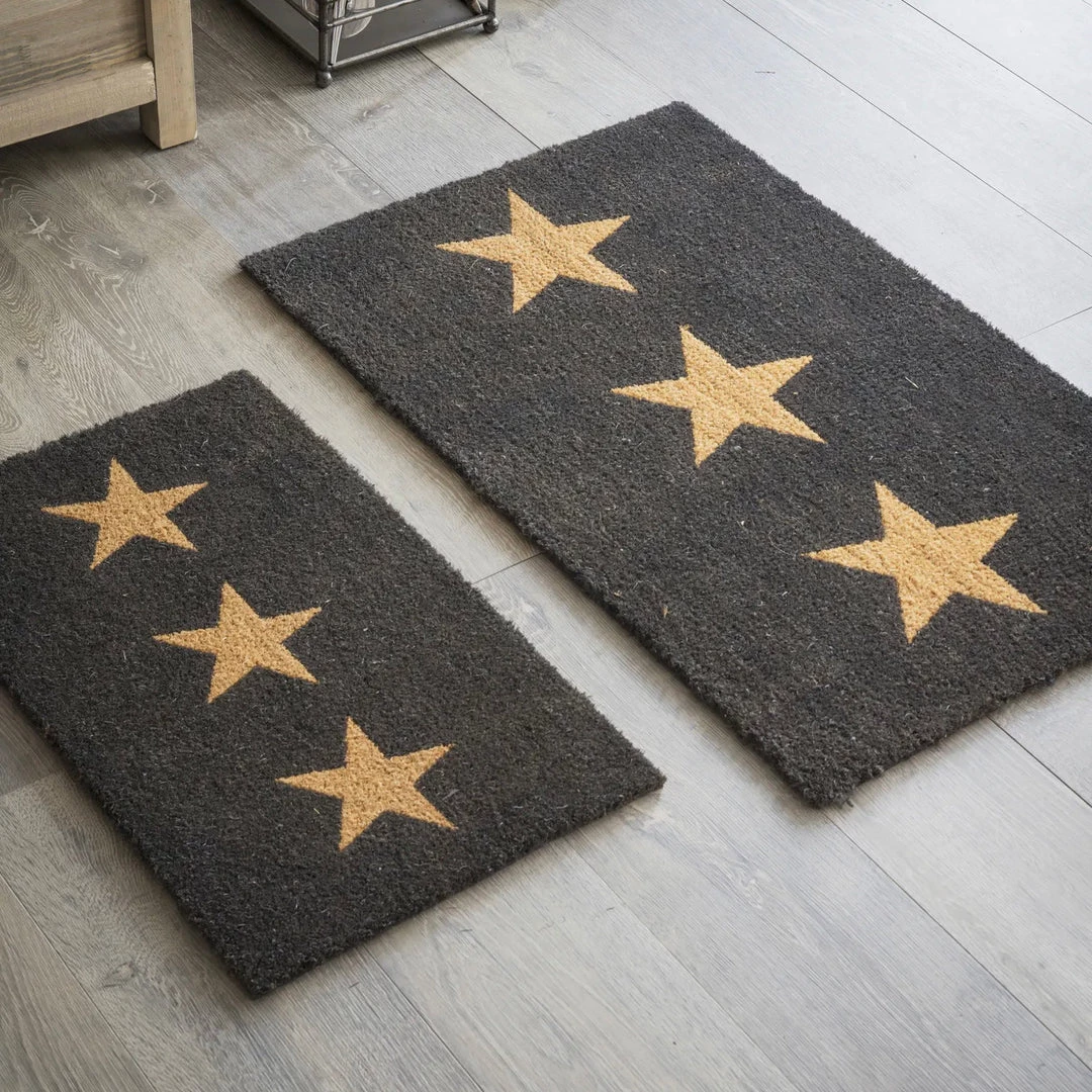 Large star doormat in charcoal with a row of three natural stars. Every entrance hall, back or front door should be dressed with the star quality it deserves. Our Star Doormat is ideal for ensuring no mud touches your carpet. It’s durable, robust and offers plenty of space for a family full of shoes which need cleaning!