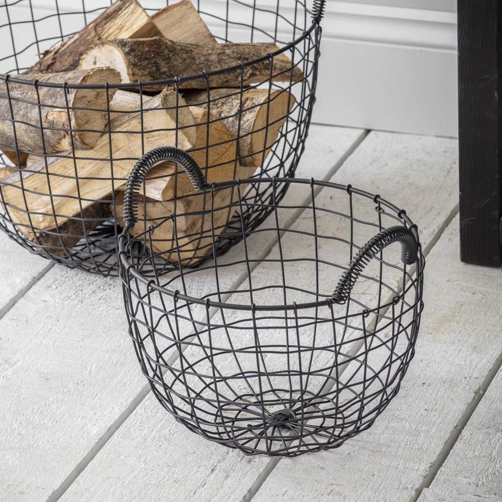 Black wirework basket.From logs to laundry. Toys to toiletries. By the fire or on the shelf. These wirework baskets with their industrial design are made for holding everything, everywhere. So many choices – luckily their handles mean they can be easily moved from room to room.