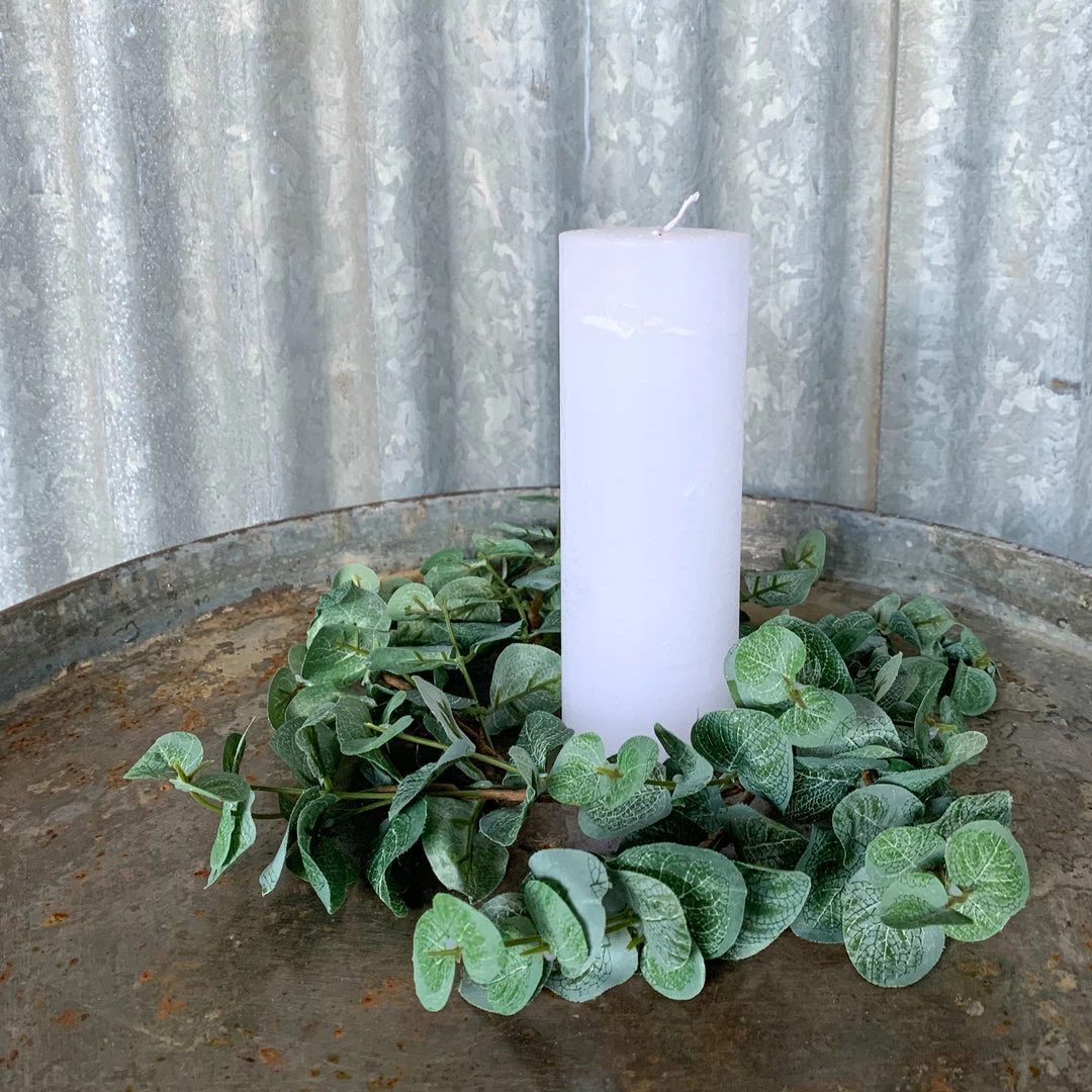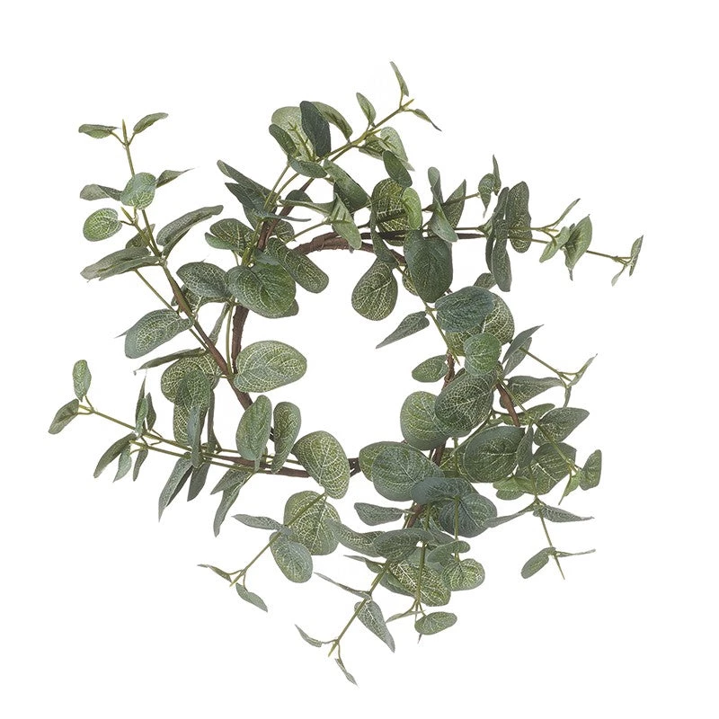 Eucalyptus hoop decoration with green leaves. A very simple, yet stylish decoration that can be used as a table decoration surrounding candles or vases.