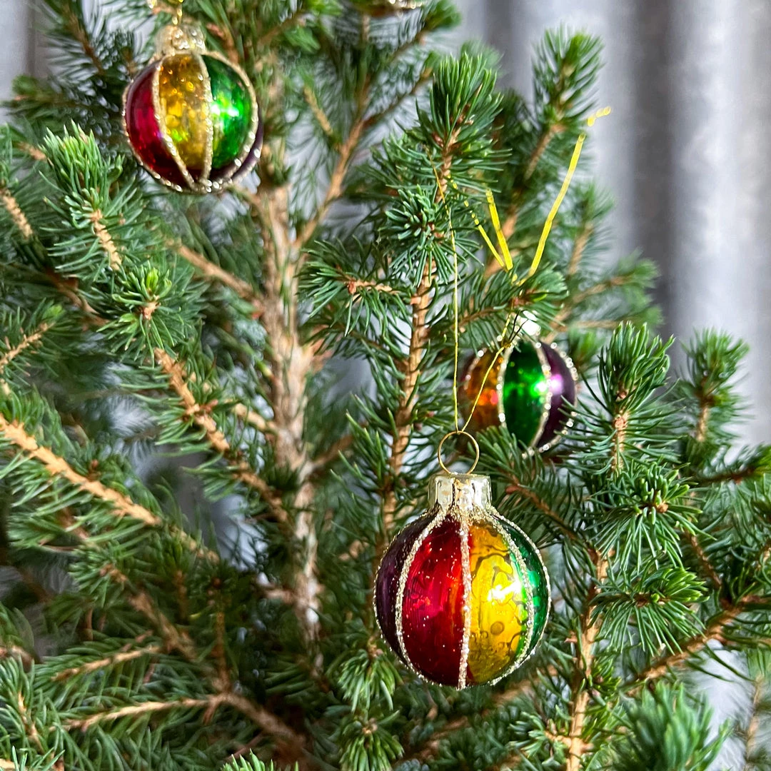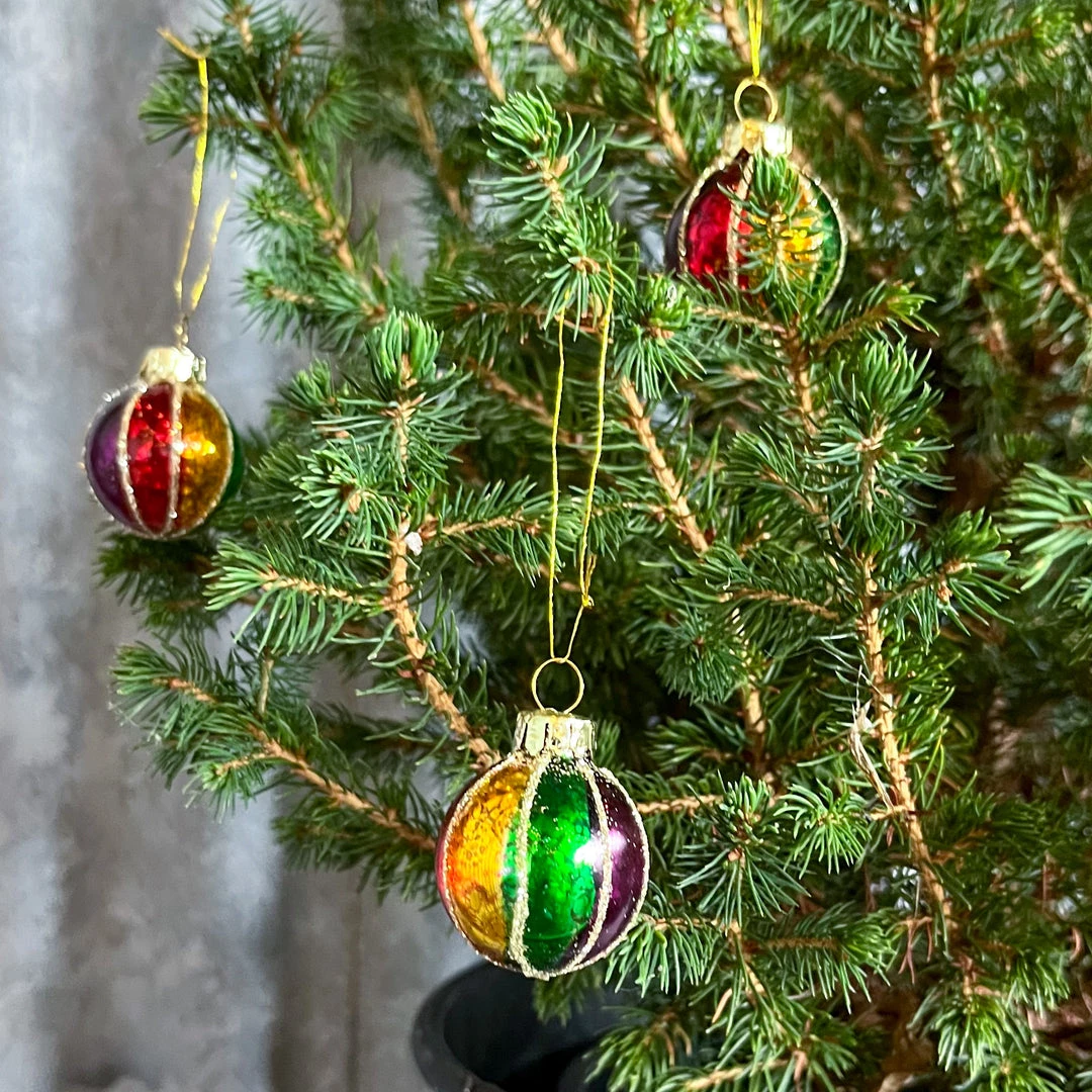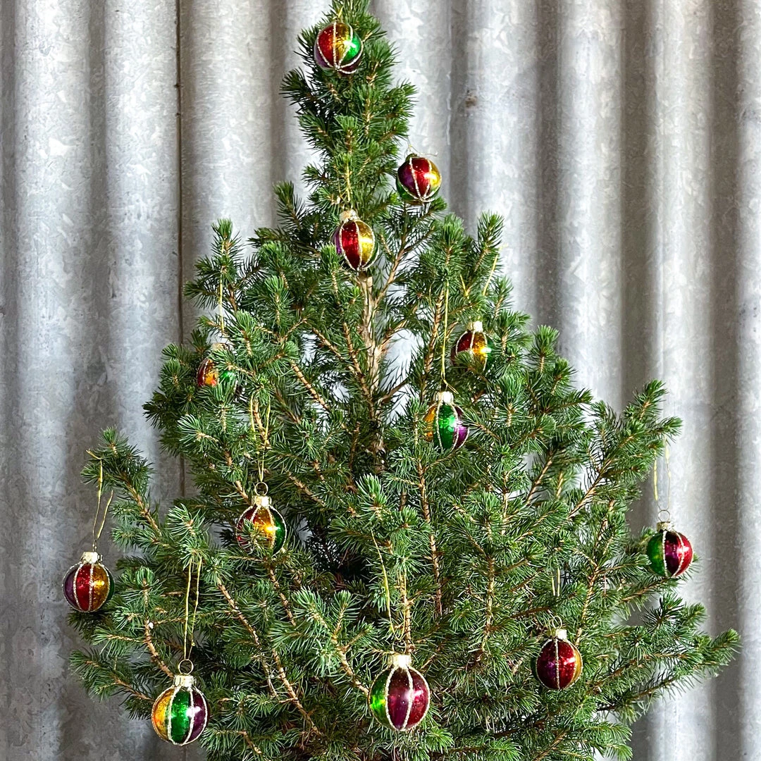 Set of 12 Mini Coloured Glass Baubles. These cute little baubles are perfect for decorating small potted trees or use them to embellish gift wrap, providing an extra keepsake for your recipients. Alternatively, add to the neck of a wine bottle for a festive flourish.