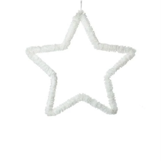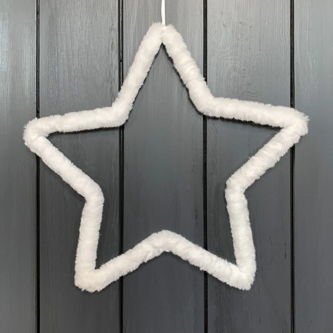 White Fluffy Star Large. Add some texture to a white Christmas with the fluffy hanging star decoration. Crafted from wire covered in soft, tactile faux fur.