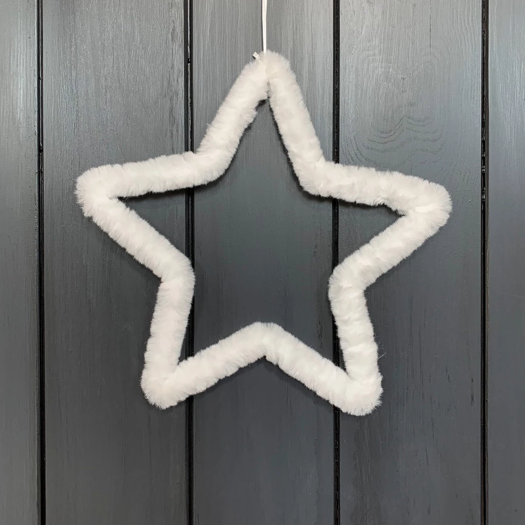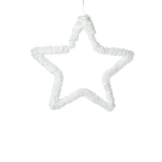 White Fluffy Star Small. Add some texture to a white Christmas with the fluffy hanging star decoration. Crafted from wire covered in soft, tactile faux fur.