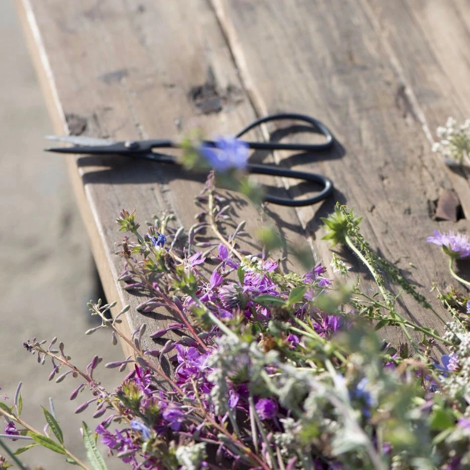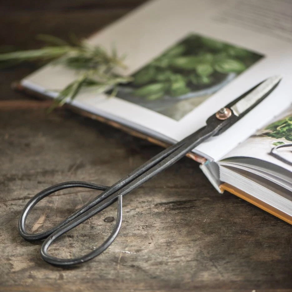 Long, vintage style black metal scissors, perfect for cutting herbs, small flowers or as a gift for crafty types.