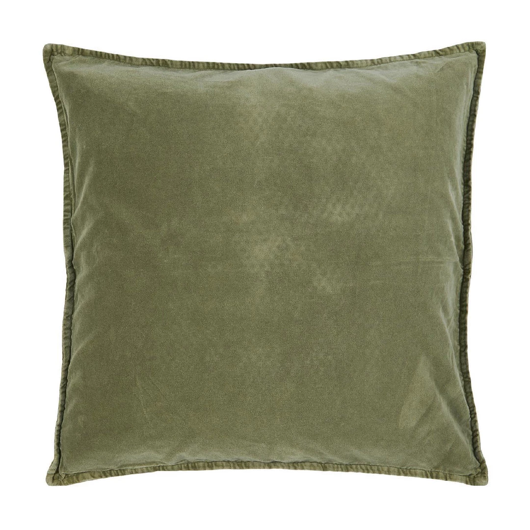 Large square velvet cushion with feather inner in an moss green colour. These velvet cushions are soft and luxurious and the subtle greenĀ colour works beautifully with neutrals, beiges, dark greys and pinks. The pile on the velvet responds to light and shadow giving it a beautiful depth of colour.
