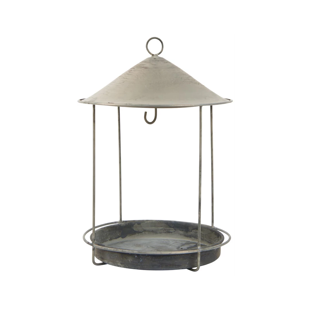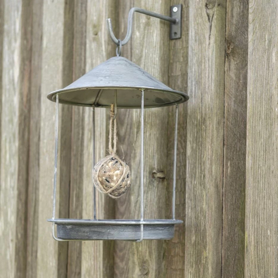 Round Zinc Bird Feeder House. Hang this metal house outside to provide a place for birds to feed or use indoors as a decorative item housing plants or other objets.