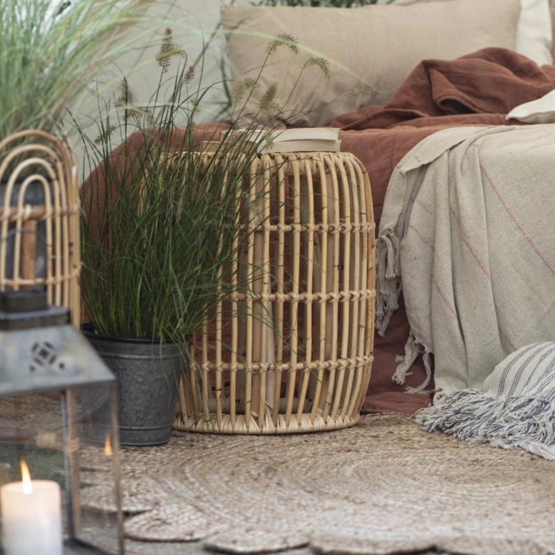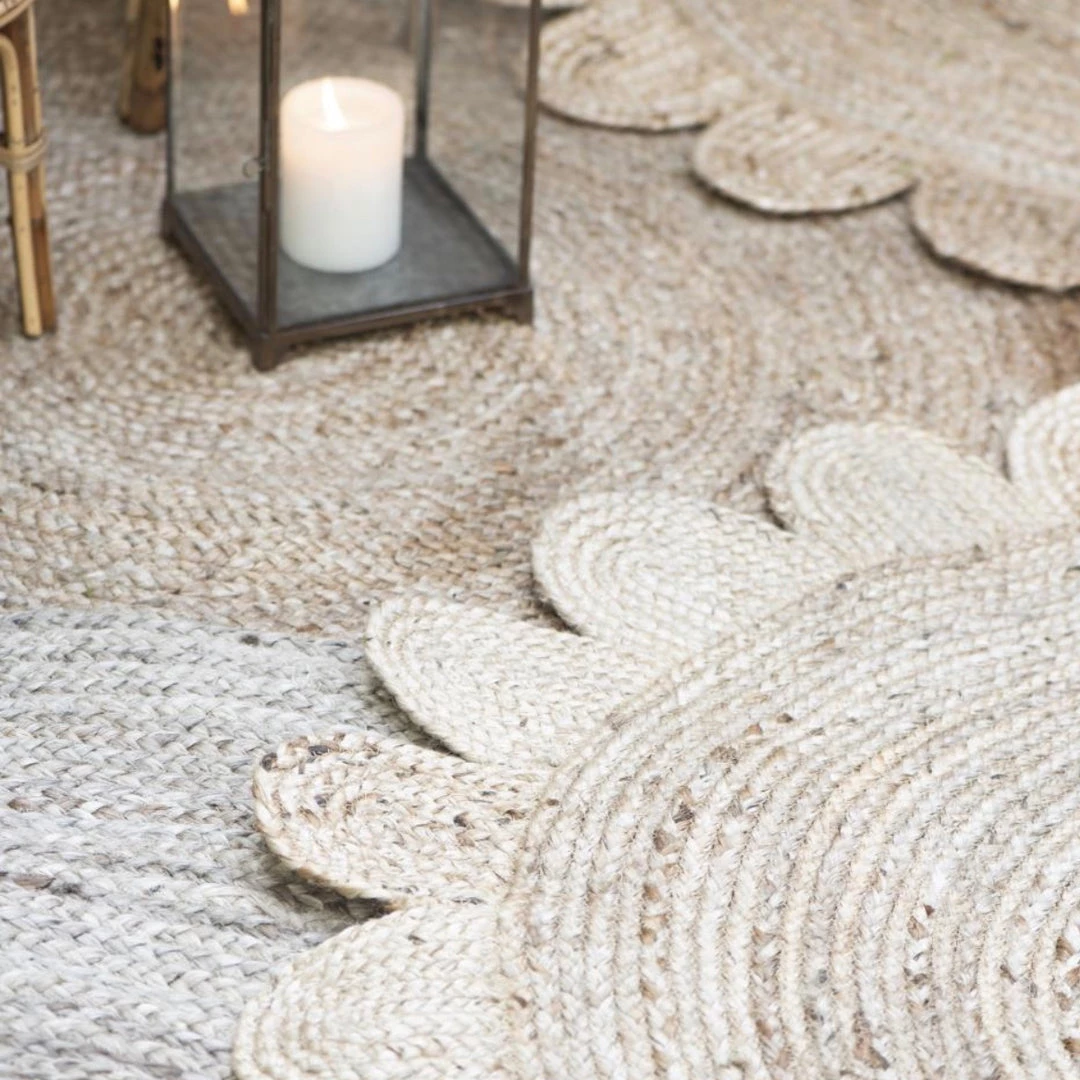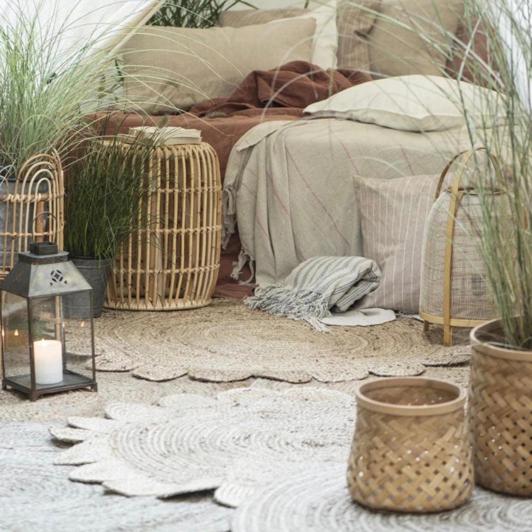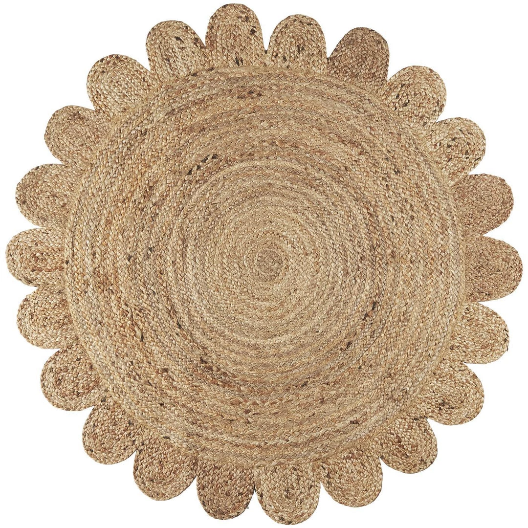 Round woven jute flower rug. Perfect for adding a drop of boho charm to your home.