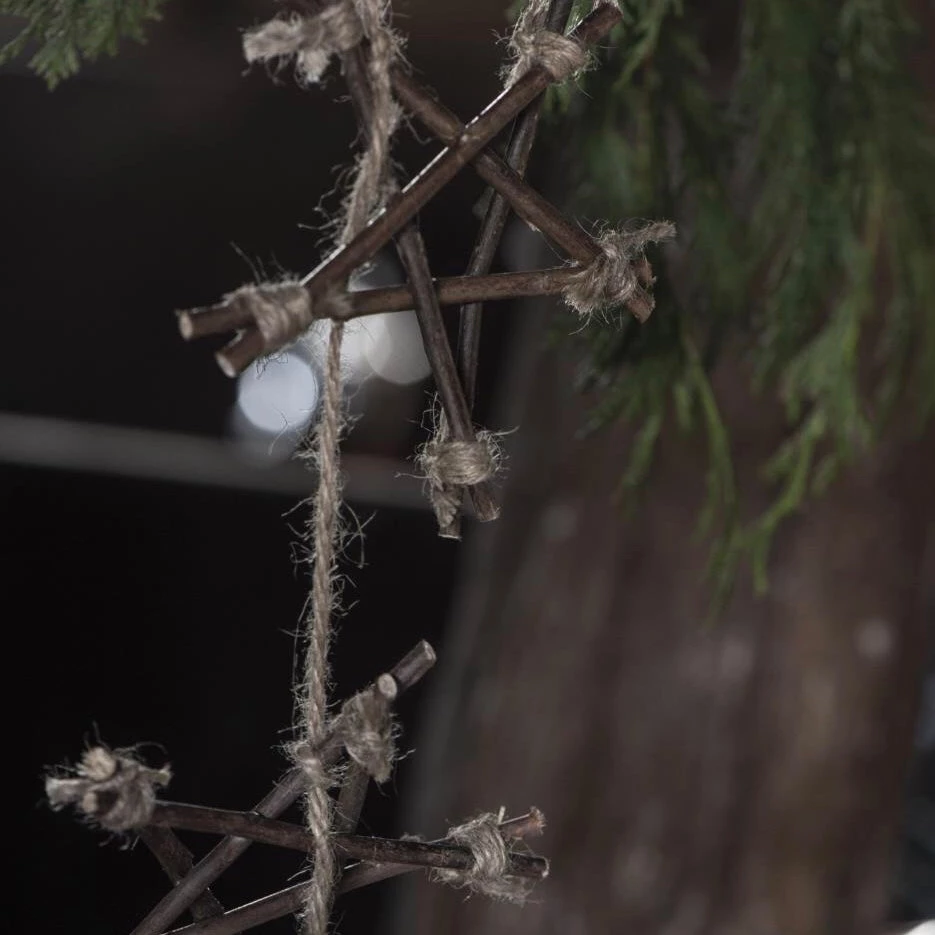 Twig and juteĀ star garland with 5 stars on a juteĀ string with loopsĀ for easy hanging. A subtle, understated decoration, perfect for those who like a natural, rustic Christmas scheme.