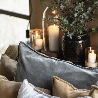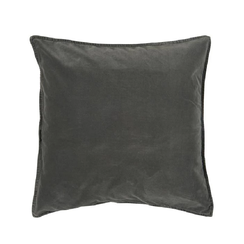 Large square velvet cushion with feather inner in a versatile, mid grey colour. These velvet cushions are soft and luxurious and change tone with the light.