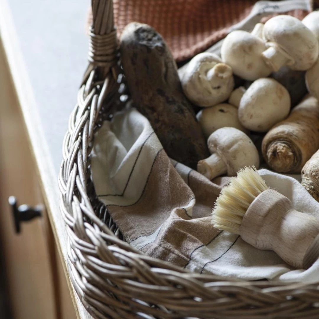 Wooden scrub brush. A wonderful, biodegradable tool for washing the dishes, scrubbing away dirt from your veggies or for general cleaning. Tough on burnt on food, but gentle on on your cookware. Crafted from Beech wood and Sisal, this is a great step towards a plastic-free kitchen.