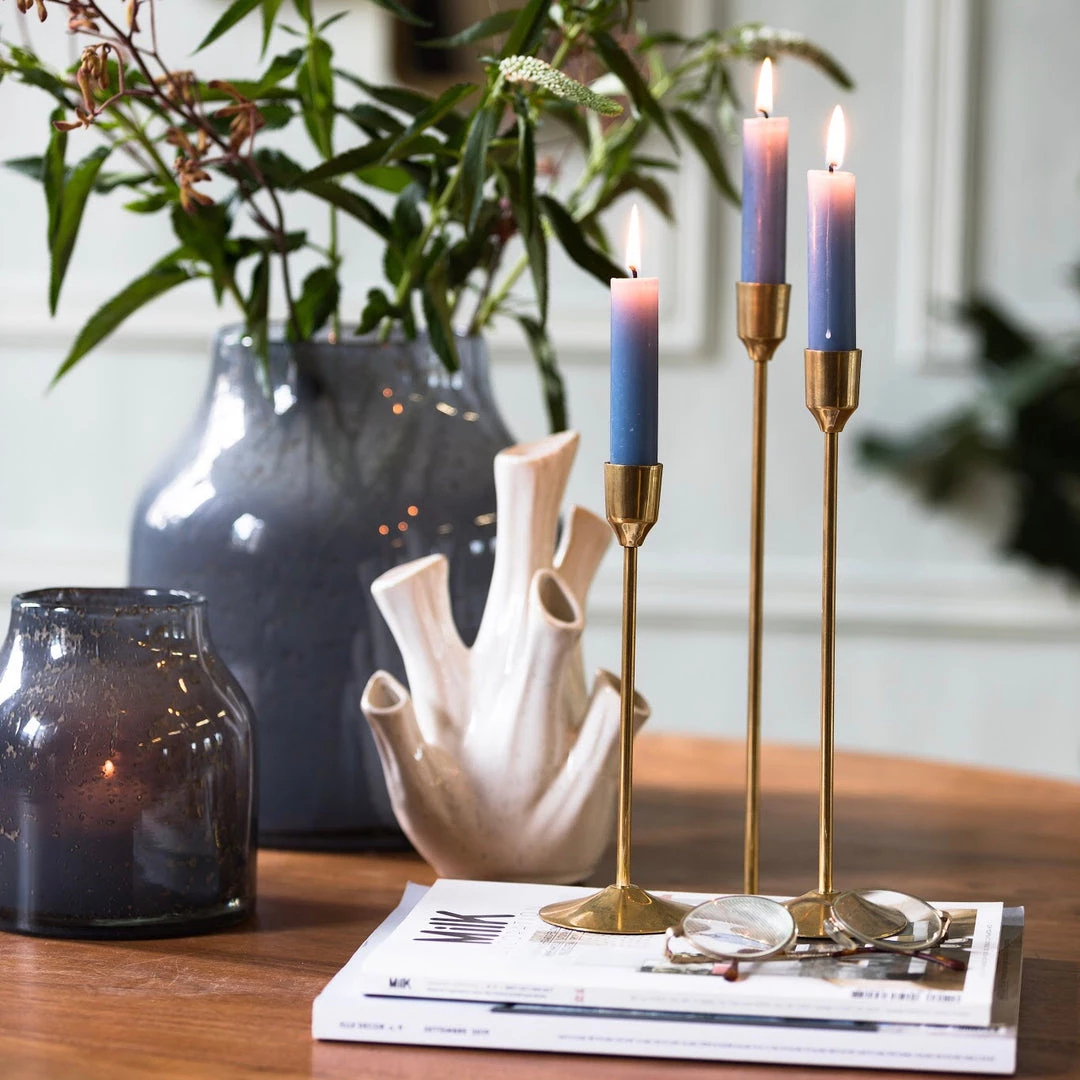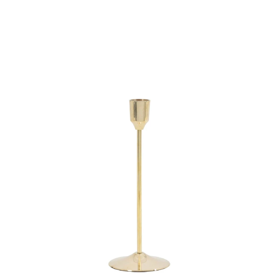 SmallĀ goldĀ colouredĀ metal candlestick.Ā Simple and striking in its design, this works so well in any room scheme and brings a dining tablescape or mantelpiece to life. Metallic touchesĀ add interest to a room, catching the light and candlelight is beautiful all year round Also available in tall.