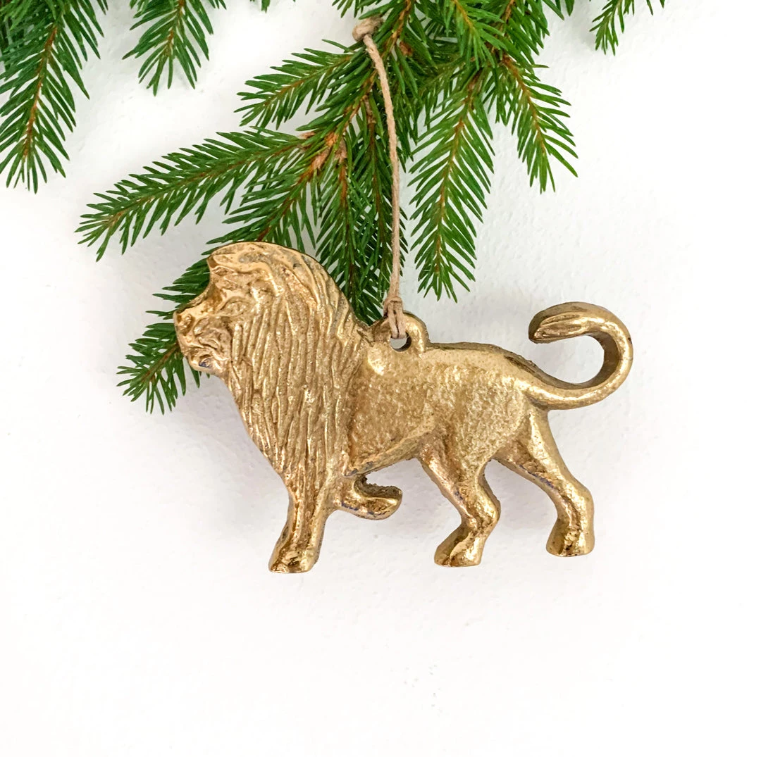 Golden lion tree decoration. Go wild with these fun, gold coloured metal lion tree decorations. Lion design to one side, flat on the reverse.