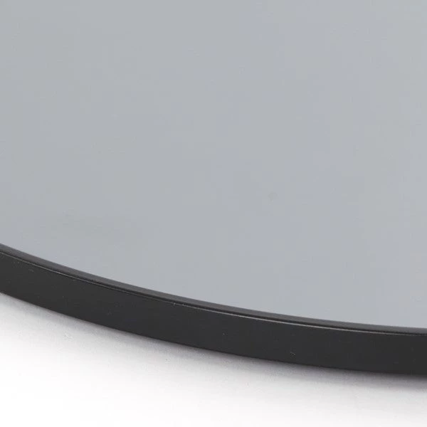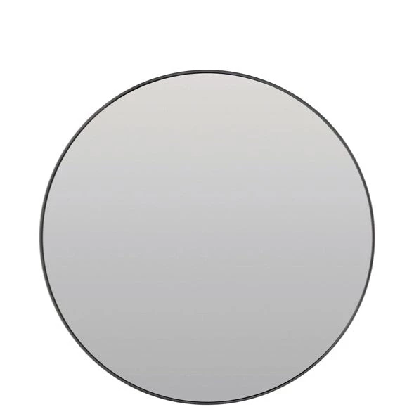 Round Black Metal Framed Mirror 70cm. This clean, stylish, round mirror is perfect for a hallway, chimney breast, bedroom or bathroom. Comes with integral brackets for ease of hanging.