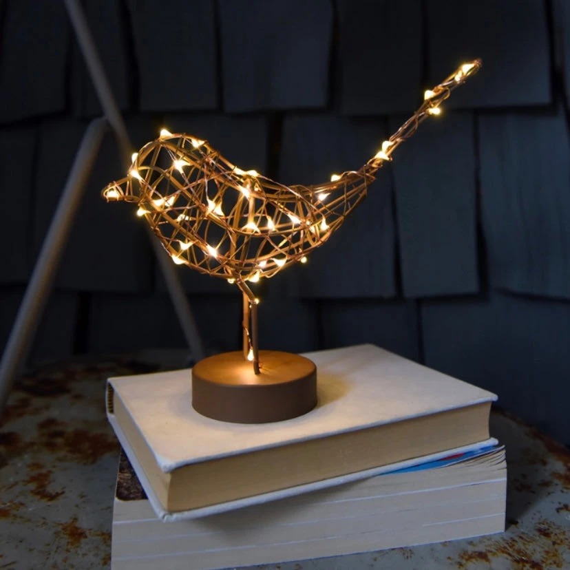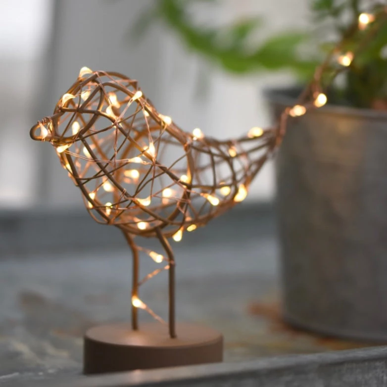 LED Robin Light in copper. Freestanding copper robin with 20 warm LED lights. Display in windows, on mantels or table tops for a delicate Christmas glow or simply for some winter cheer.