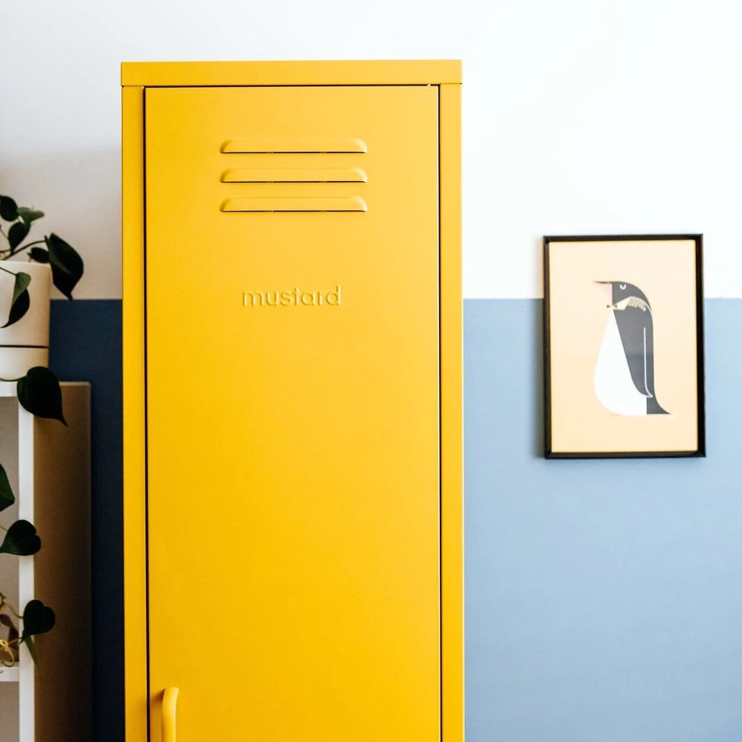‘The Skinny’ locker in mustard yellow. Cool, contemporary and so versatile, The Skinny Locker wants to help. She’ll keep your stuff neat and tidy. Standing alone or in paired with friends The Skinny is elegant, beautiful and practical.