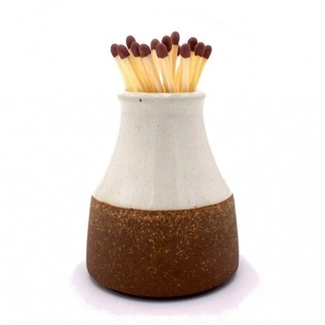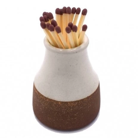 Milk Bottle Match Striker. Ceramic milk bottle shaped bottle with 25 safety matches and a striker pad on the bottom. This sweet little bottle makes an excellent gift. The bottle can be reused, whether by refilling it with matches, using it as a bud vase or milk bottle as part of a tea set, the choice is yours and the possibilities are as endless as your imagination. This little bottle means that you don’t have to hide your matches away in a drawer, but display them beautifully by your candles or fireside. An absolute joy to use.