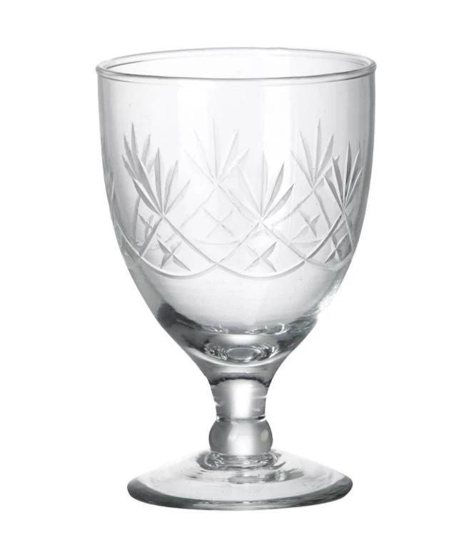 Etched stem glass. Use this pretty, vintage style etched stem glass for serving wine, water or liqueurs.