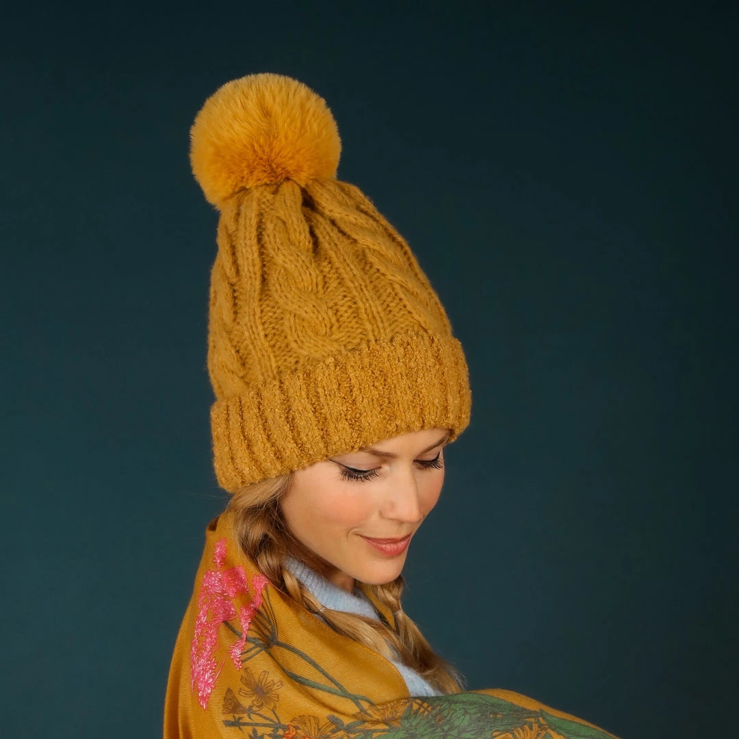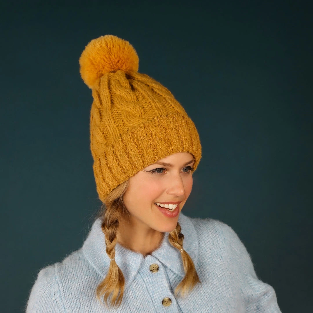 Super Cosy Bobble Hat in Mustard. Mix it up with a hat full of warm textures – this chunky knit Hat will have you feeling warm and fuzzy in no time! The spicy Mustard colourway is classic for Autumn and Winter. Comes with complimentary gift packaging.