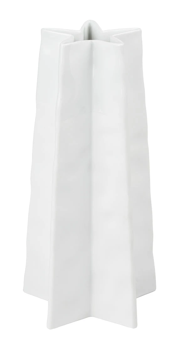 Large Porcelain Star Vase. This white porcelain star shaped vase has an organic, dimpled effect. Glazed inside and at the top of the outside, this has matt white lower section. Add a few simple stems to create a beautiful display. Makes a lovely gift.