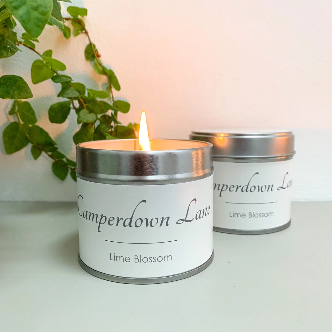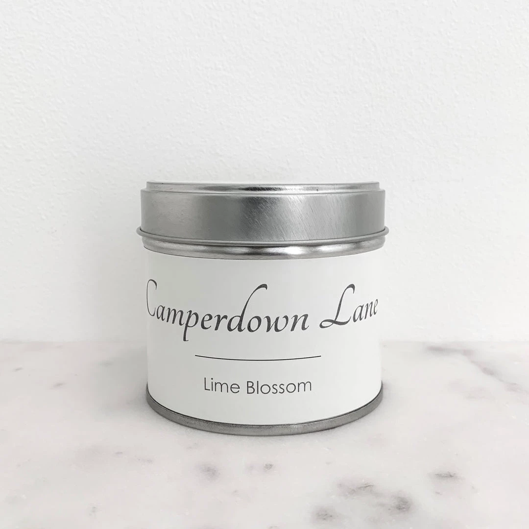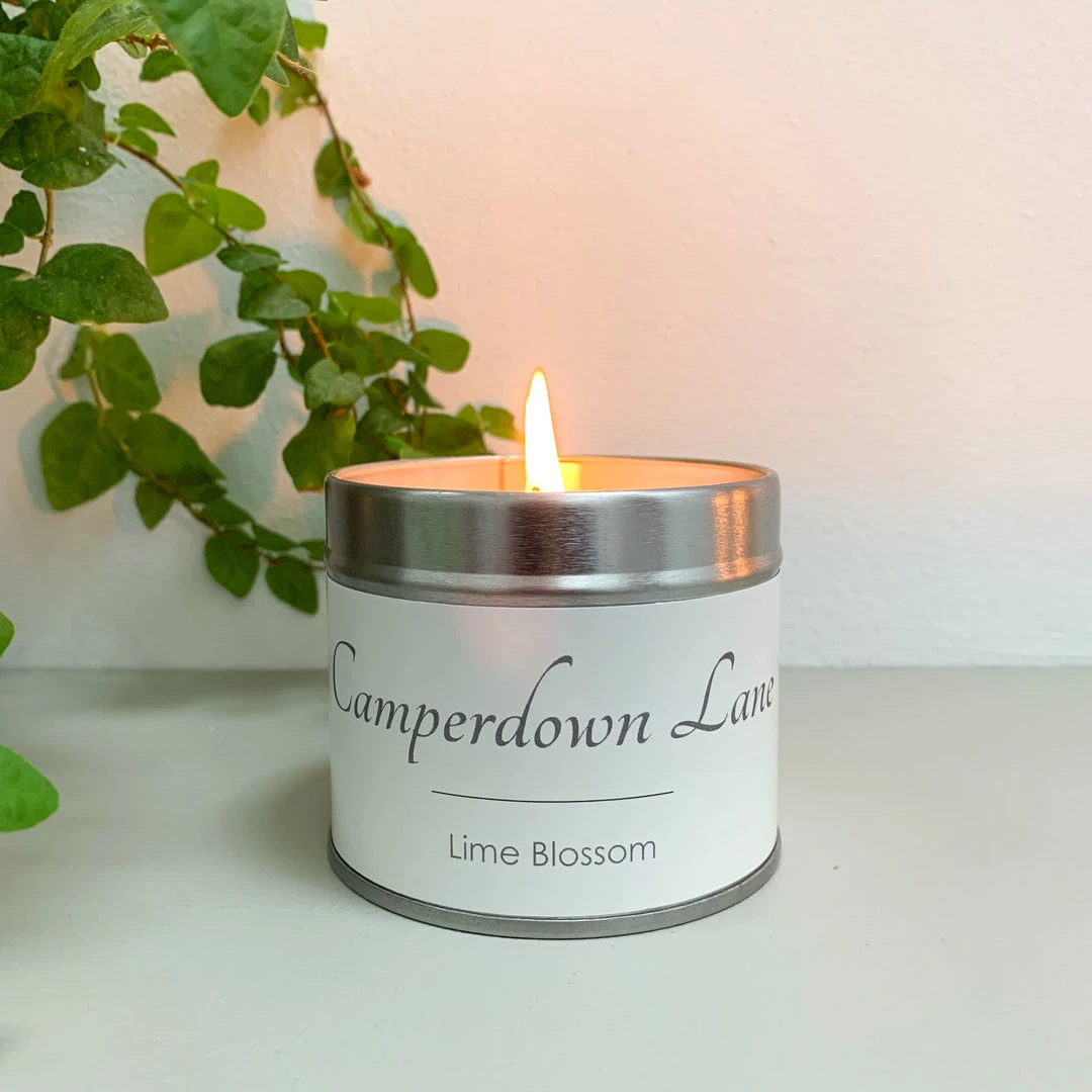 Lime Blossom scented candle in a tin. This scent has a fresh light body which really feels alive with its mix of vibrant notes, helping to soothe away the stresses and strains of the day. The exquisite scent of perfect white Lime Blossom, with its floral middle notes, exudes the fragrance of bursting summer trees. These candles in a tin make a lovely gift and are great as travel candles.