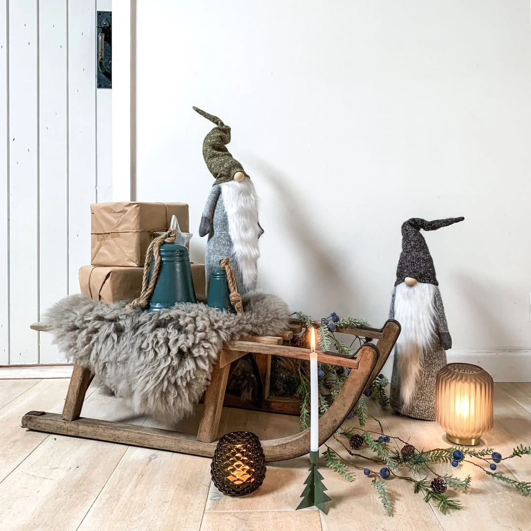 Tall green standingĀ Santa Christmas decoration. Crafted from faux fur, this delightful bearded chap adds a touch of stylish fun to a Christmas scheme. Wearing aĀ green woolly hat and felt gloves, he is ready for Winter.