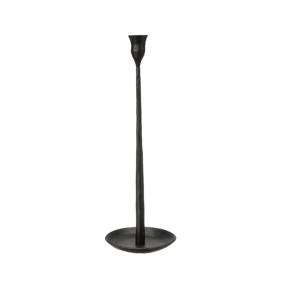 Matt Black Iron Candlestick Large. These iron candlesticks are weighty and full of rustic charm. They work beautifully in a modern country home, or in an industrial style scheme. The base has a slight lip allowing you to add decorative touches such as greenery or flowers.