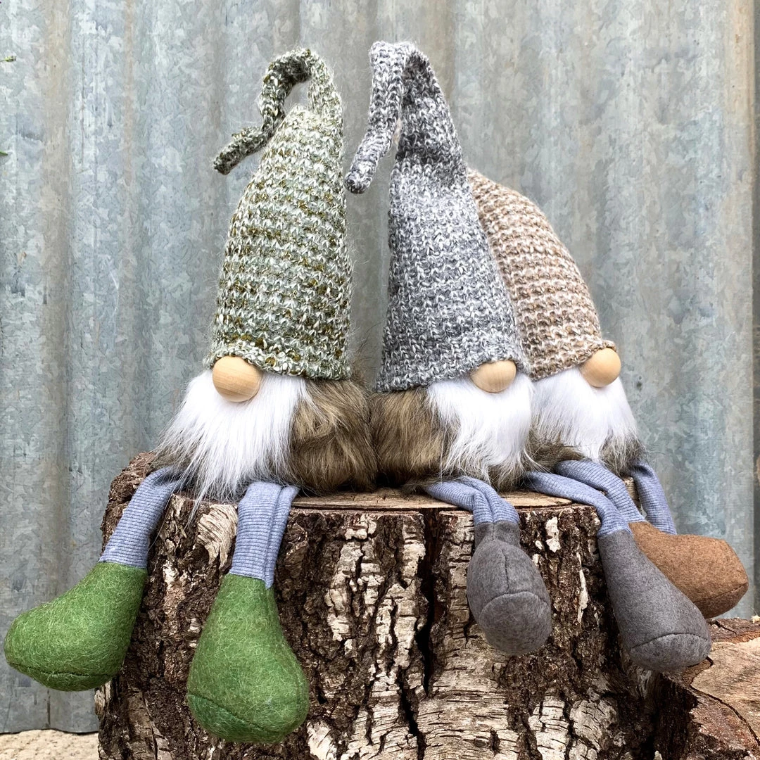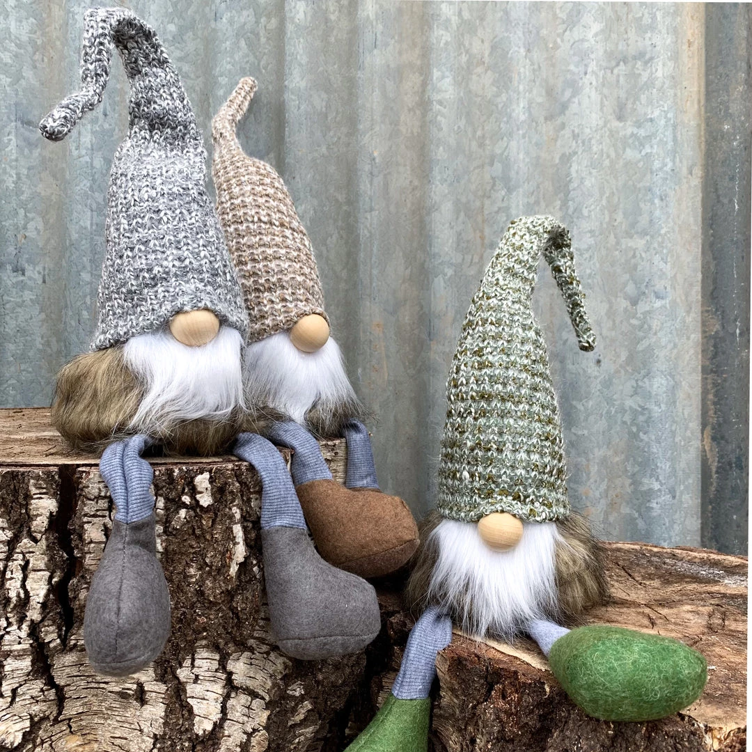 Large brown Christmas Gonk. The most adorable Scandinavian Sitting Gonk Santa decoration, wearing a brown woolly hat and felt boots. The hats contain wire so they can be bent in any direction you choose.
