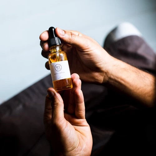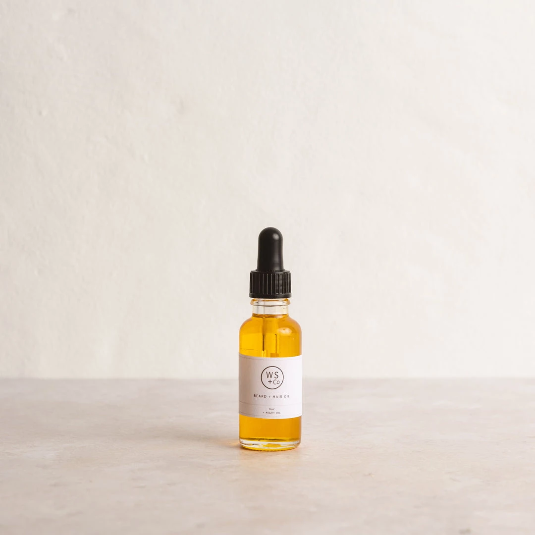 Beard and Hair Oil with Pipette by Wild Sage + Co. Natural, plant based, chemical free, vegan and cruelty free. With a blend of Broccoli, Argan + Castor oil, this oil is perfect for most hair types and helps to smooth hair follicles while taming fly away strands