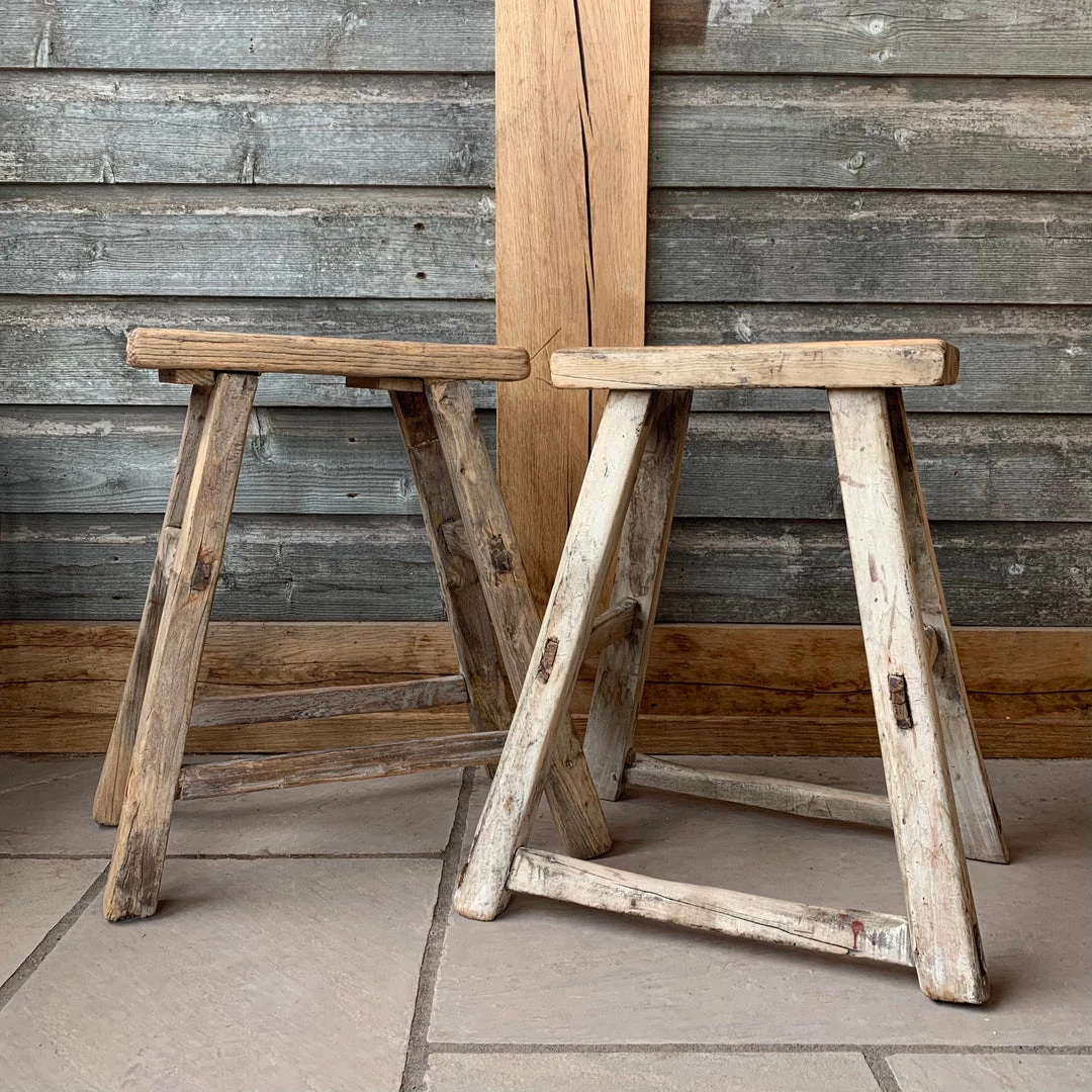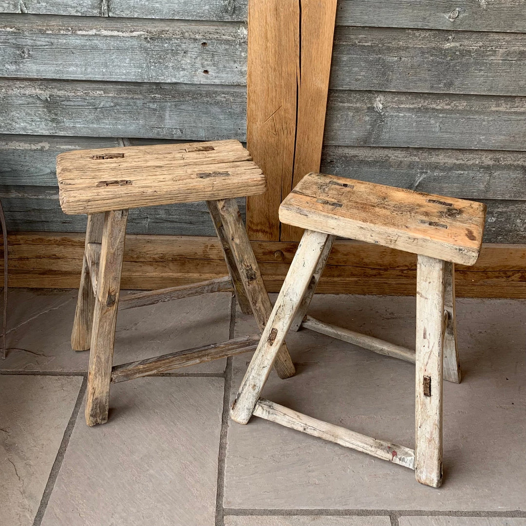 Vintage unique rustic wooden stool. These rectangular stools are crafted from vintage elm and make a great addition to the home, bringing in the warmth and texture of gnarly wood. Use as a stool, a side table or a plant stand. Every stool is different and can vary in colour and size.